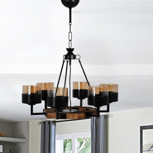 Metal, wood and glass details combine in this six-light chandelier to create a piece brimming with industrial flair. Offering an instant highlight in the home, the chandelier is as practical as it is stylish, with a dimmable function and adjustable height providing greater control over your lighting situation. Lightbulbs are not included.